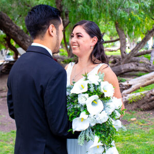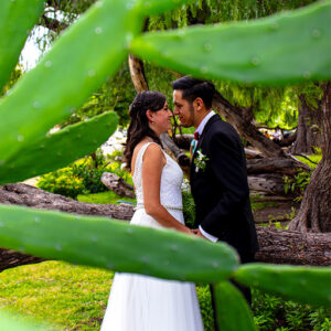 En sus manos, un jardín de promesas florece, siendo la naturaleza un testigo del amor que crece. Capturada por la eternidad del lente.